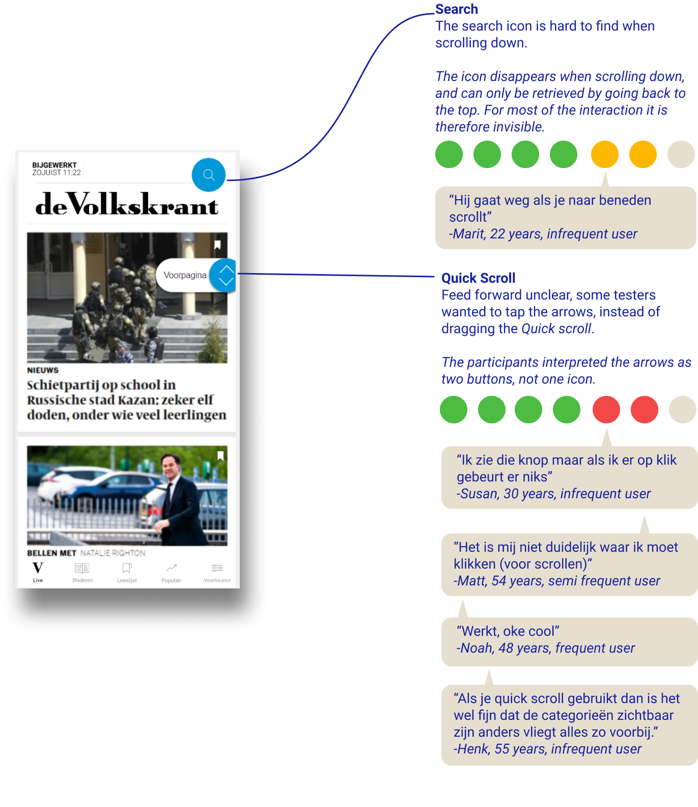 Uiteindelijk hebben we ons gericht op het verbeteren van 4 kerntaken die de deep dive use case het meeste beinvloeden; navigeren van de home-pagina, artikelen verbinden, de leeslijst managen & het personaliseren van de live-pagina.